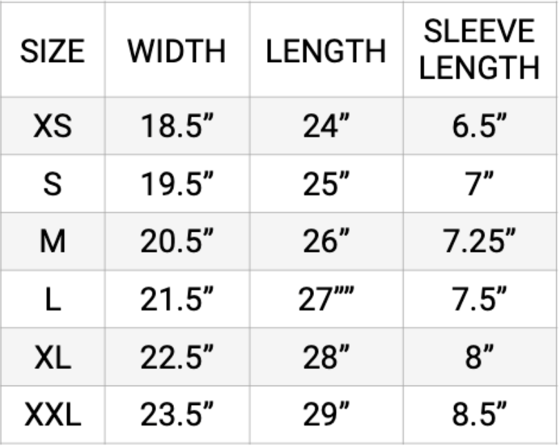 Size Width Length Sleeve Length